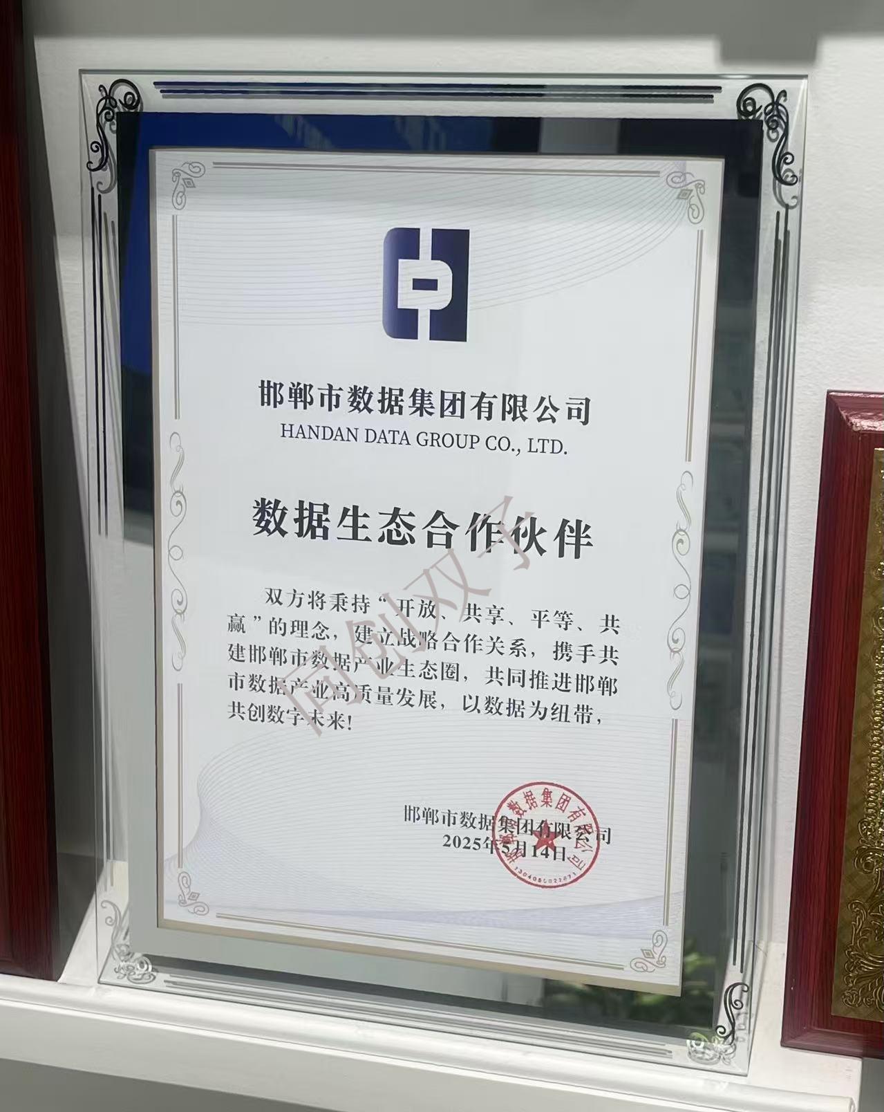 大会期间,邯郸市产投集团与数据集团举行了隆重的五大领域合作伙伴授牌仪式。同创双子凭借在数据技术领域的卓越实力和突出贡献,荣获 “数据技术类“标杆企业,与众多知名企业同台受誉,并签约成为邯郸市数据集团有限公司数据生态合作伙伴。这是对同创双子技术实力与行业贡献的高度肯定,同时也标志着公司在数据技术领域的领先地位得到了广泛认可。